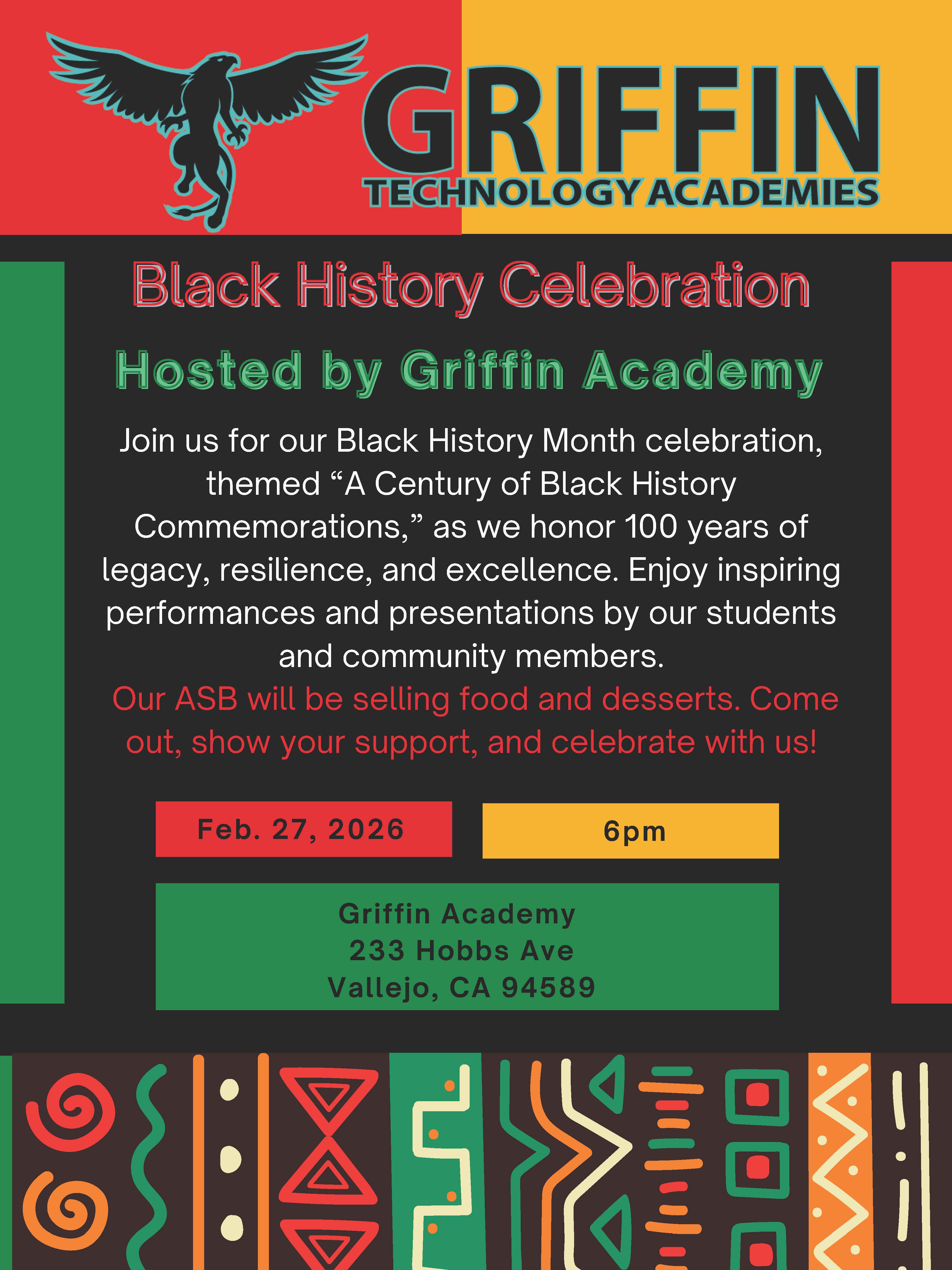 The mission of Griffin Technology Academies is to prepare students in Vallejo to be ready for college, career, and life through diverse, innovative instructional programs that focus relentlessly on student academic achievement and social, and emotional well-being.